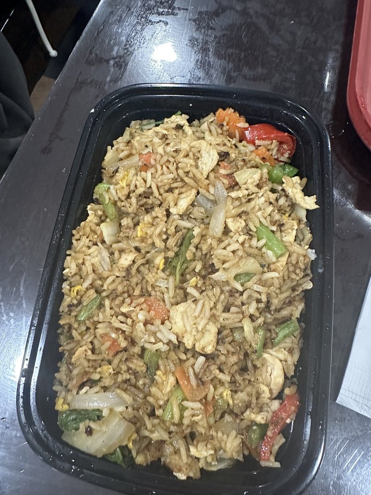 Medium spice level. Fresh mango, red bell peppers, onions, carrots, Thai basil. Served with Jasmine Rice.